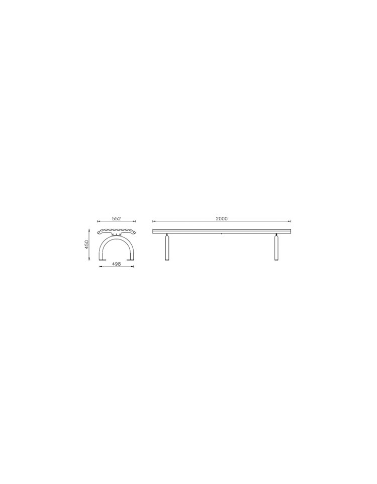 Panchina senza schienale realizzata interamente in acciaio zincato e verniciato - cm 200x49,8x45h