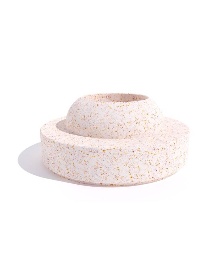 Panchina tonda con fioriera centrale e schienale liscio o bombato - in cemento colore Bianco travertino - cm Ø 200x85h - CAM