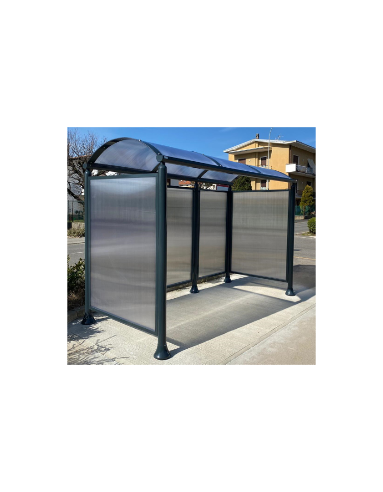 Pensilina 3 moduli in acciaio verniciato con copertura e parete di fondo in policarbonato alveolare - cm 330x158,8x239,5h