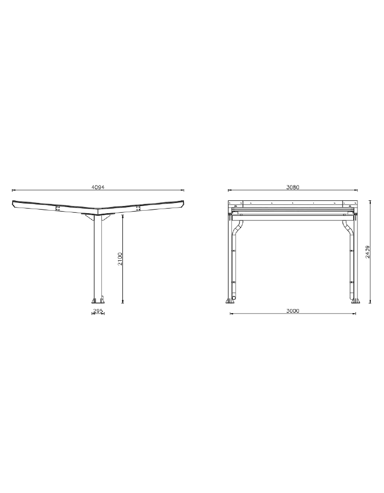 Pensilina componibile a moduli, composta da due fianchi realizzati con tubolare a sezione rettangolare.