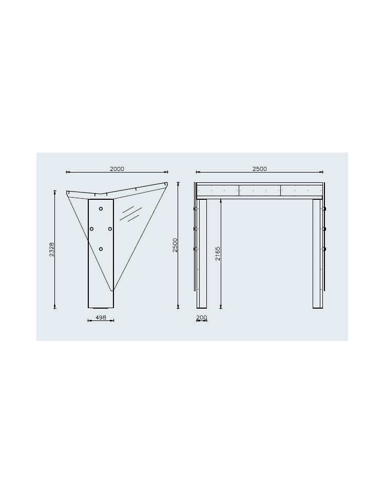 Pensilina bus dal design moderno con pareti realizzate in vetro sagomato trasparente - cm 250x200x232,8h