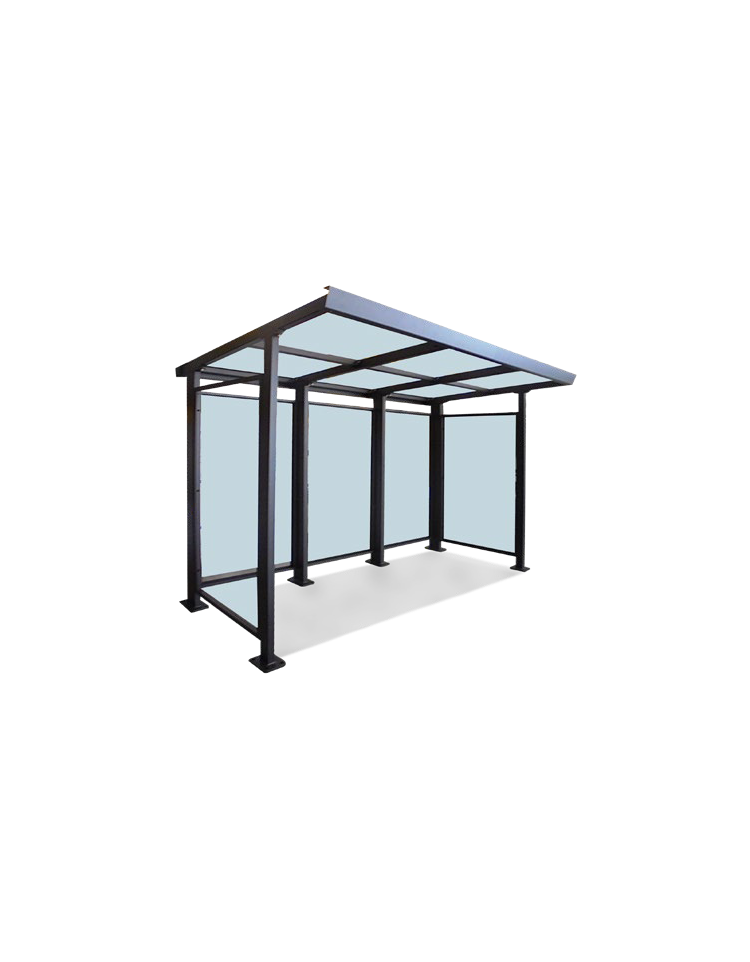 Pensilina componibile a moduli, composta da due fianchi realizzati con tubolare a sezione rettangolare.