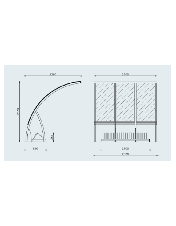 La conformazione della stessa non prevede grondaia e facilita lo scolo dell’acqua e la dispersione dei venti. Struttura zincata e verniciata nelle varie colorazioni RAL, viteria interamente in acciaio inox. Il portabici (non incluso) è a discrezione del cliente tra i vari della collezione. Adatta a scuole, aree commerciali e tutte le strutture di grande affluenza.