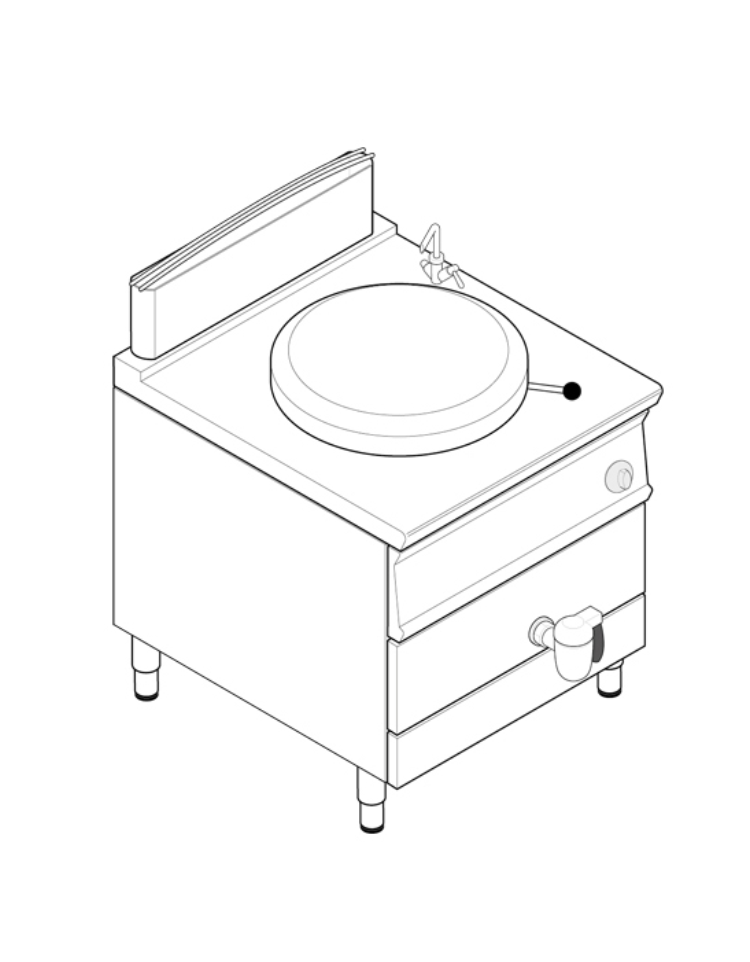 Pentola a gas diretta - 1 vasca in AISI 316, capacità Lt 150, vasca cm Ø60xh54 - potenza totale Kw 21 - cm 80x90x90h