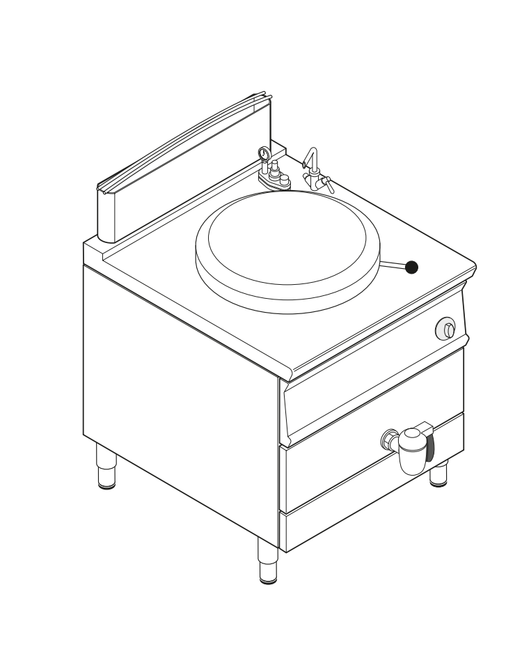 Pentola a gas indiretta - 1 vasca in AISI 316, capacità Lt 100, vasca cm Ø60xh41,5 - potenza totale Kw 21 - cm 80x90x90h