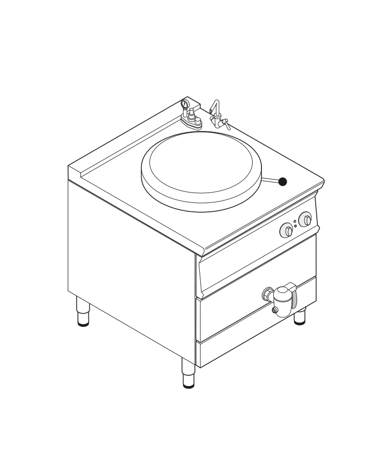 Pentola elettrica indiretta - 1 vasca in AISI 316, capacità Lt 50, vasca cm Ø40x45h - trifase Kw 9 - cm 80x70x90h