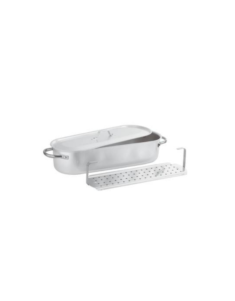 Pesciera in alluminio completa di griglia e coperchio - 2 maniglie tubolari inox 18/10 - cm 60x17x13h - Litri 13