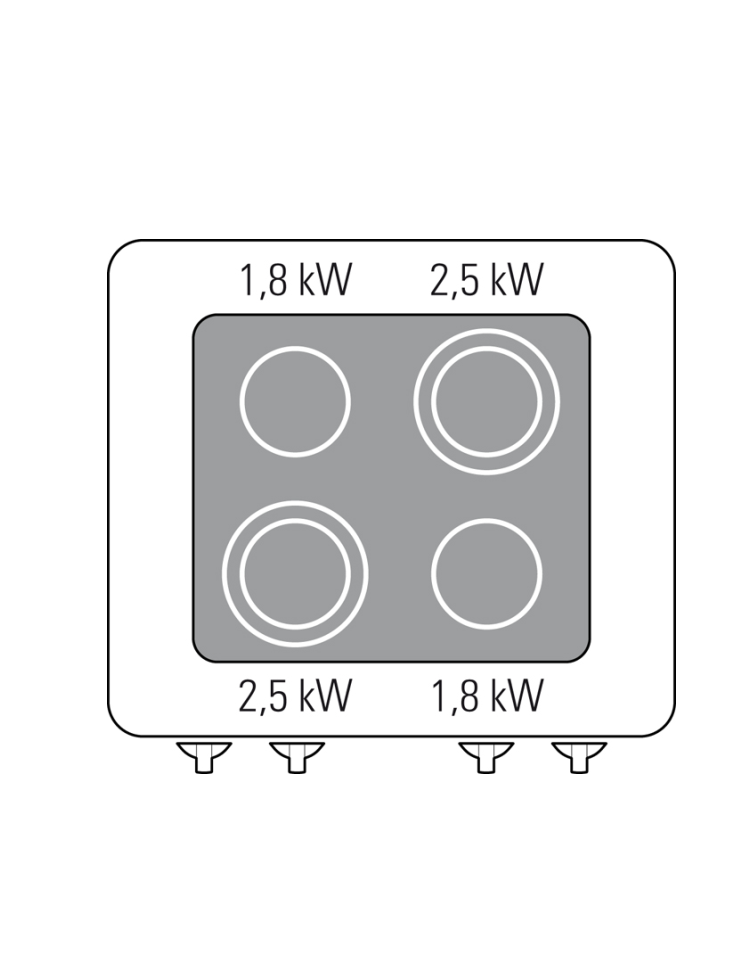 Potenza delle zone di cottura [n°- kW]2x2,5 + 2x1,8