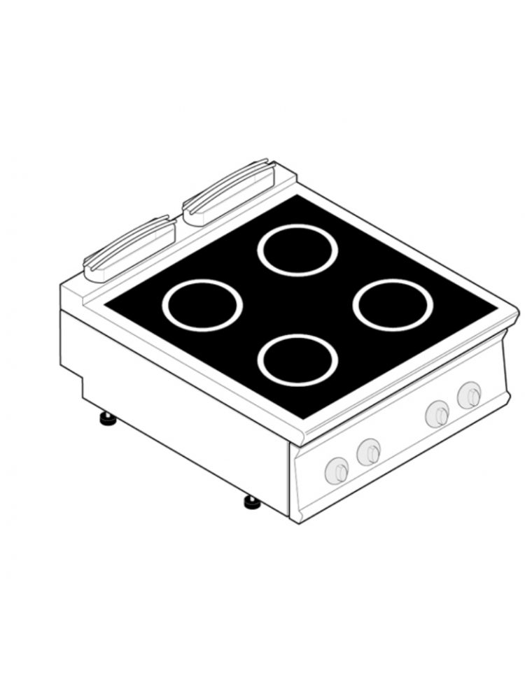 Piano cottura elettrico ad induzione da banco in acciaio inox, 4 zone di cottura - potenza totale 20Kw trifase - cm 80x90x28h