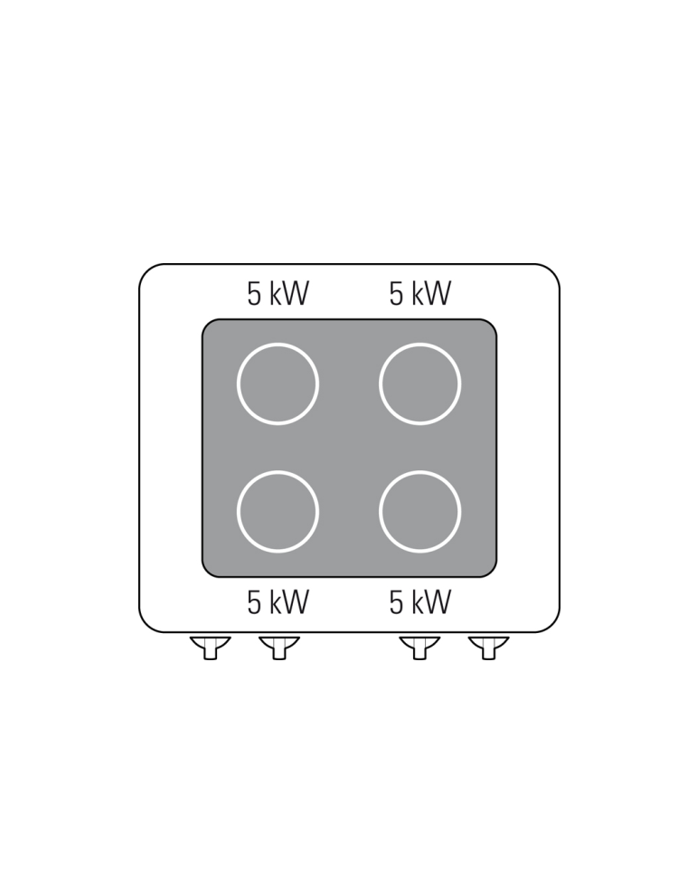 Zone di cottura indipendenti da 5 kW ciascuna.
