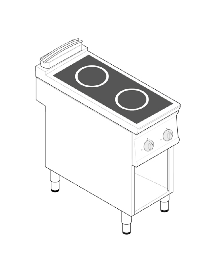 Piano cottura elettrico ad induzione su vano aperto, 2 zone di cottura - potenza totale 10Kw trifase - cm 40x90x90h