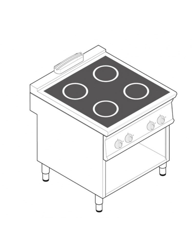 Piano cottura elettrico ad induzione su vano aperto, 4 zone di cottura - potenza totale 20Kw trifase - cm 80x90x90h