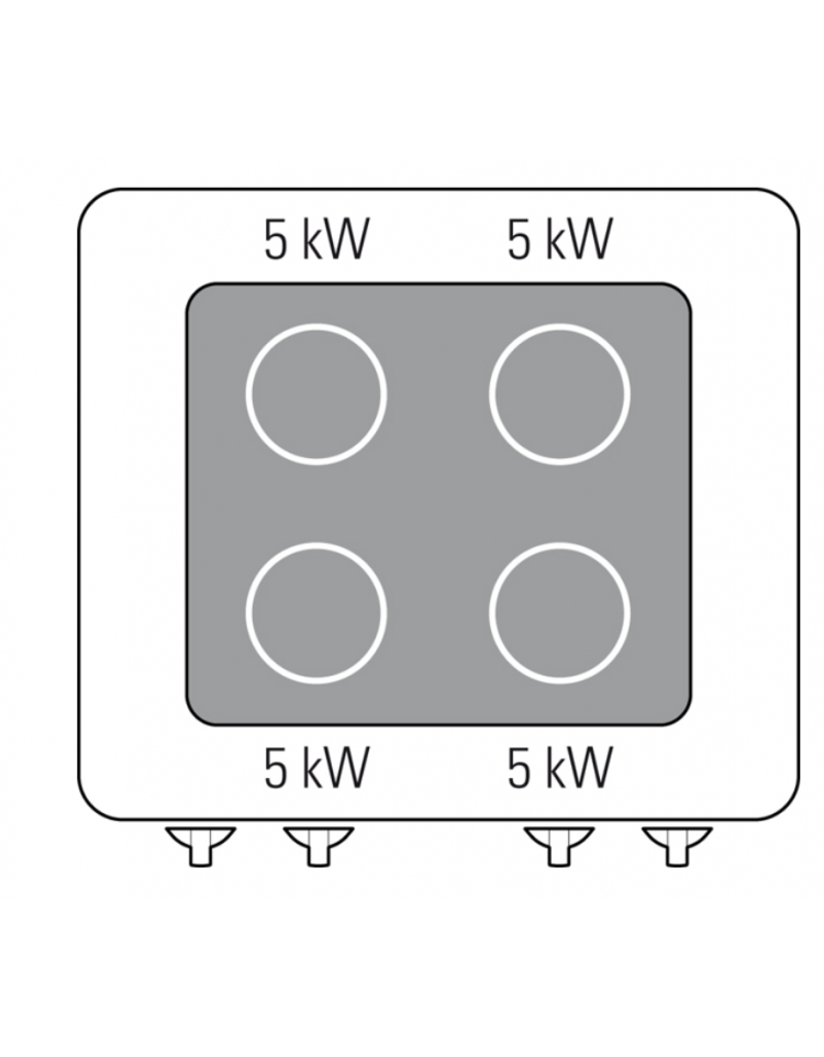 Zone di cottura indipendenti da 5 kW ciascuna.