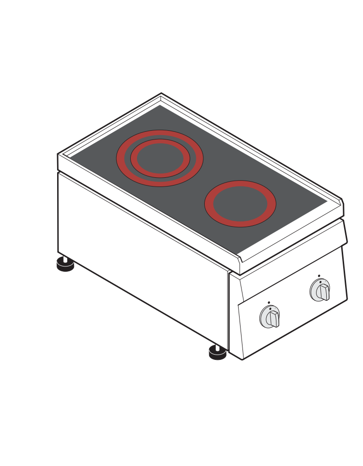 Piano cottura elettrico in vetroceramica da banco - 2 zone cottura - potenza tot. 4,3 Kw trifase - cm 35x60x30h