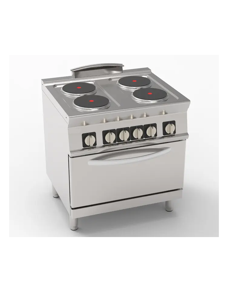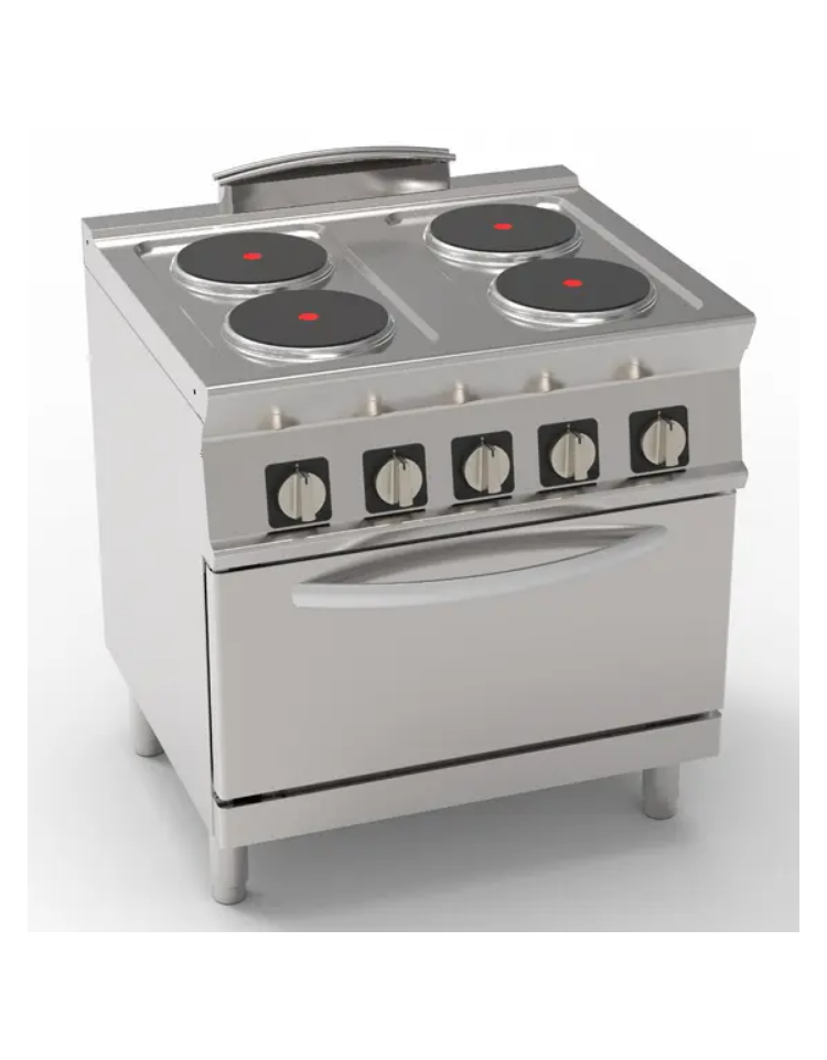 Piano di cottura in acciaio inox CrNi 18/10 AISI 304 trifase-10,4kw, 4 piastre tonde su mobile a giorno - cm 80x70,5x90h