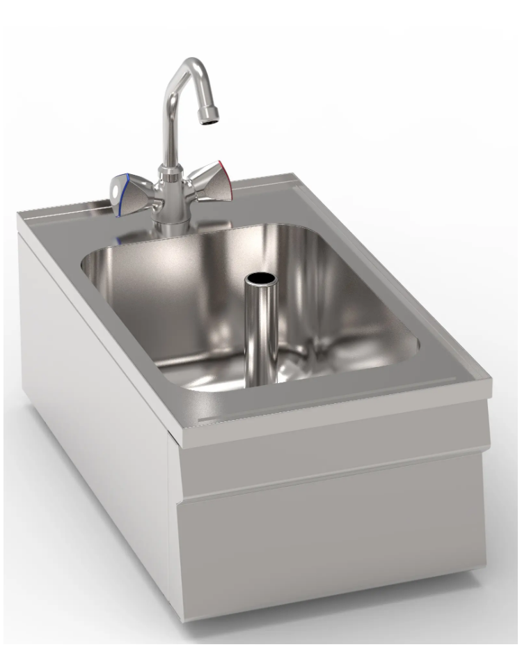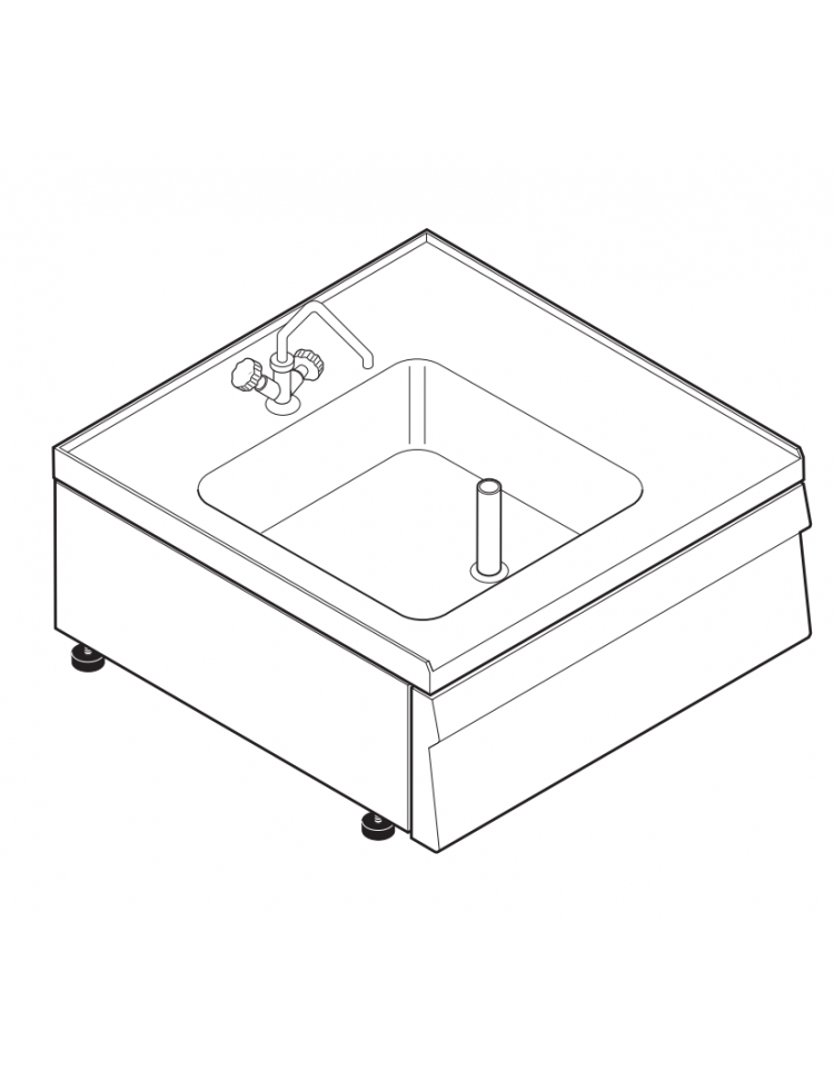 Modello realizzato in acciaio inox CrNi 18/10 AISI 304, con piano di spessore 1 mm, satinatura superficiale Scotch-Brite, particolari cromati, profili arrotondati. Piani dotati di alzatina posteriore.