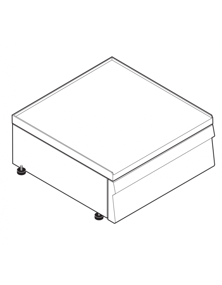Piano di lavoro neutro, versione top 70x60 cm, in acciaio inox AISI 304 con finitura Scotch Brite.