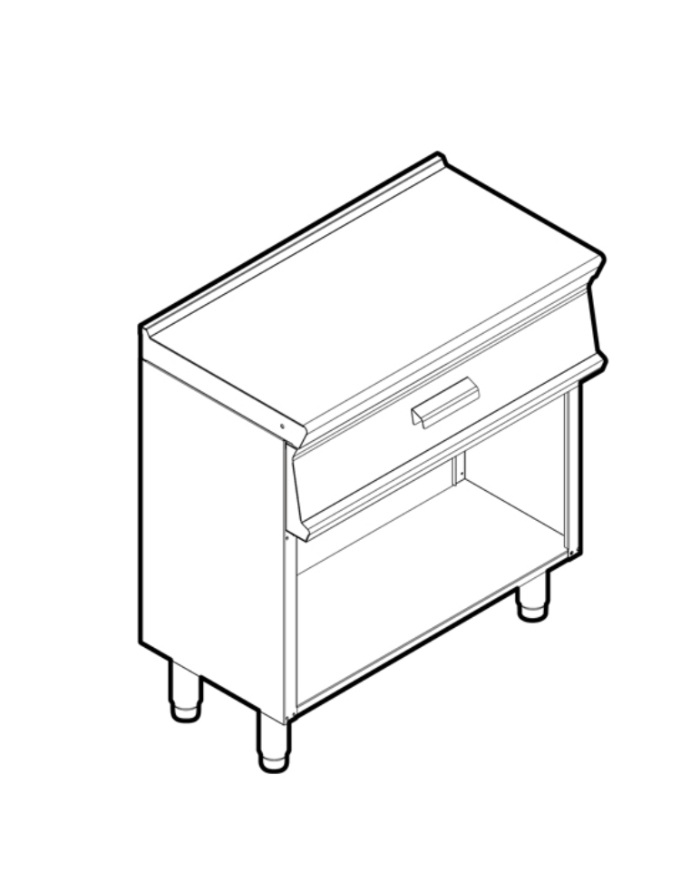 Piano di lavoro neutro freestanding su vano aperto da 80x45 cm con cassetto.