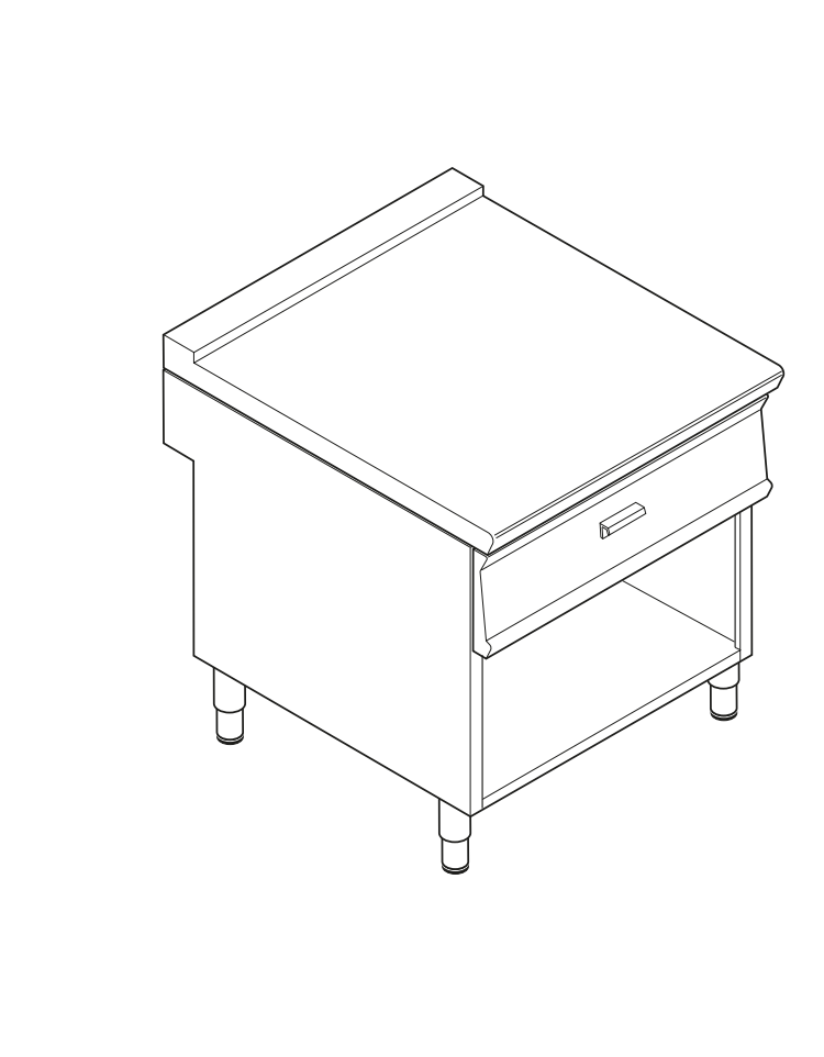Piano di lavoro neutro freestanding su vano aperto da 80 cm con cassetto.