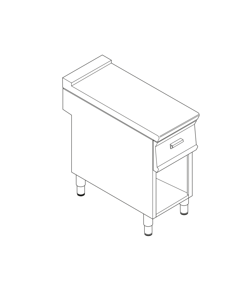 Piano di lavoro neutro in acciaio inox AISI 304 su vano aperto - con 1 cassetto GN1/1 - cm 40x70x90h