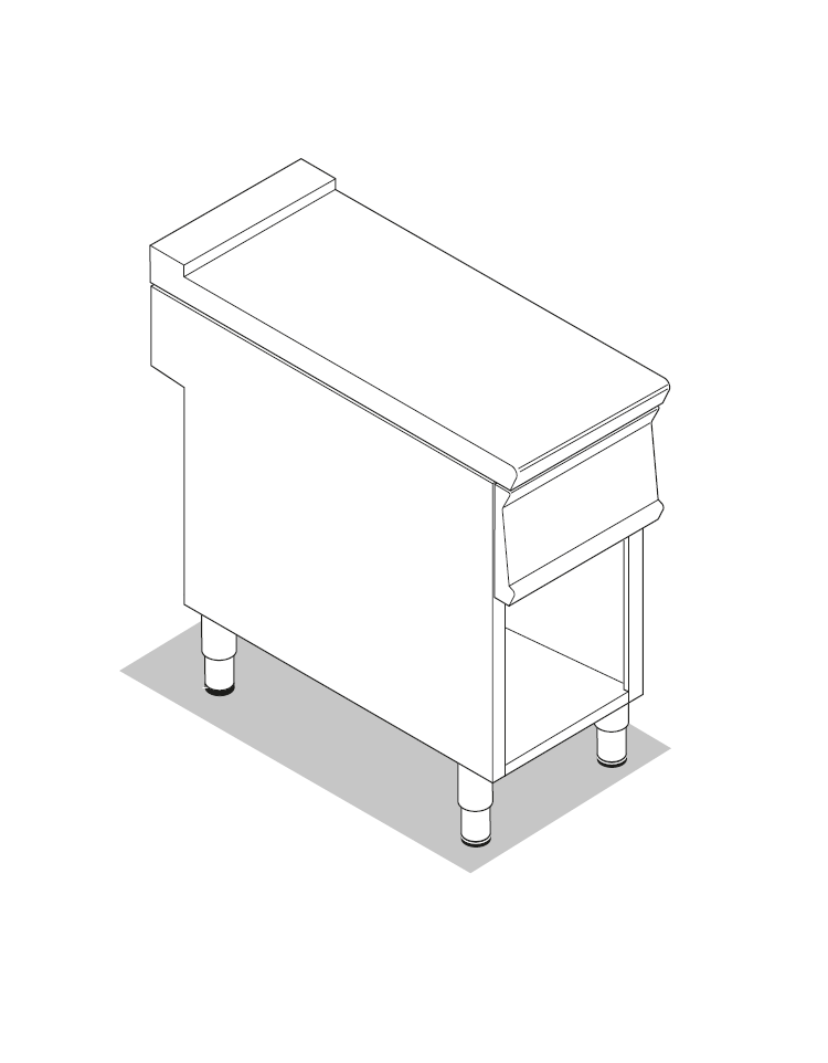 Piano di lavoro neutro in acciaio inox AISI 304 su vano aperto - senza cassetto - cm 35x90x90h