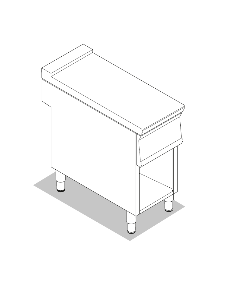 Piano di lavoro neutro in acciaio inox AISI 304 su vano aperto - senza cassetto - cm 60x90x90h