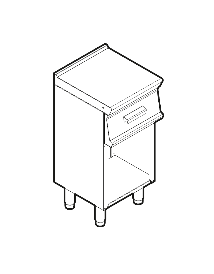 Piano di lavoro neutro freestanding su vano aperto da 40x45 cm con cassetto.