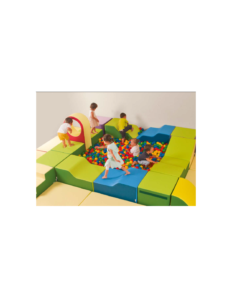 Gli arredi morbidi sostengono e incoraggiano lo sviluppo relazionale e sensomotorio dei bambini da 0 a 6 anni, con un sistema di elementi combinabili con estrema flessibilità, progettati per le esperienze di scoperta del corpo e dello spazio. Sono di facile manutenzione, privi di PVC e ignifughi in Classe 1IM ai sensi del Decreto del Ministero dell’Interno 16.07.2014: ciò significa che non solo il rivestimento esterno, ma l’intero manufatto è ignifugo. I morbidi si caratterizzano per un alto grado di aderenza al pavimento negli accostamenti laterali e verticali.