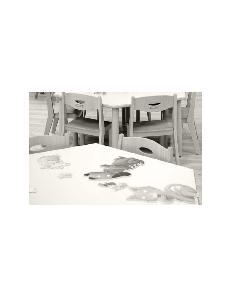 I piani per tavoli sono in massello di faggio, possono essere in diverse geometrie, accessibili su tutti i lati, per consentire le più diverse attività. I bordi sono arrotondati.