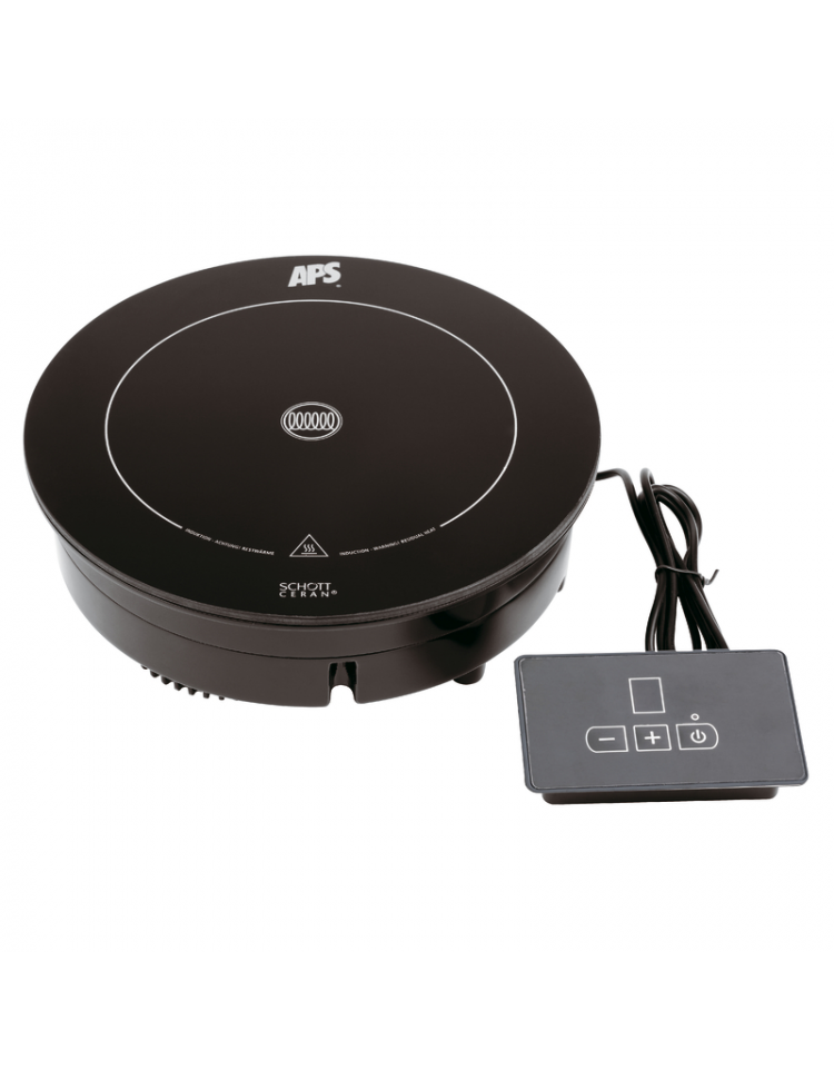 Piastra a induzione Ø cm 24 con supporto in metallo, inserto in legno e cornice inox - potenza Watt 900 - cm 35,4x32,5x19h