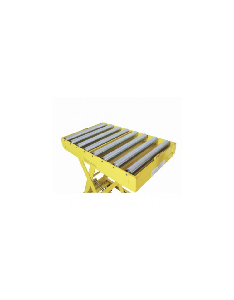 Il carico può essere sollevato mediante leva a pedale mentre la discesa può essere controllata manualmente mediante leva posizionata sul timone. La presenza della rulliera a 10 rulli, rende facile e pratico lo spostamento del carico. Ideale come macchina di asservimento linee.