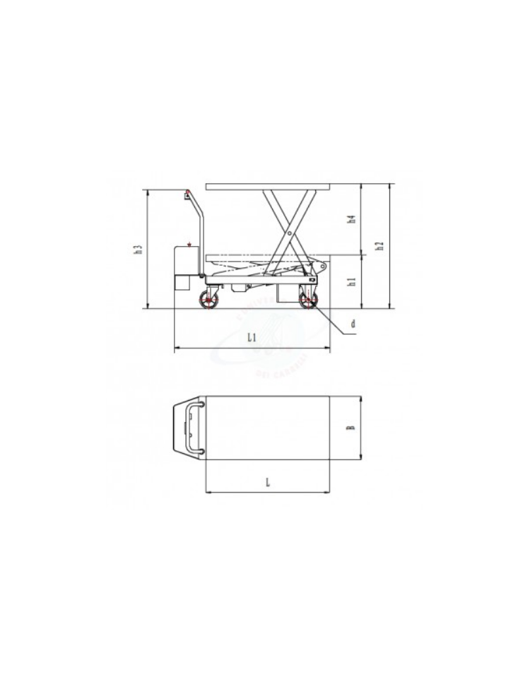 Piattaforma carrellata elettrica grande alzata - piano di carico in lamiera liscia cm 91x50 - portata kg 350