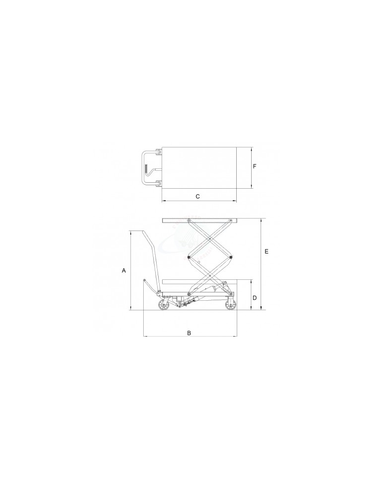 Piattaforma carrellata grande alzata con rulliera - piano cm 122x61 - ruote in poliuretano, 2 girevoli con freno