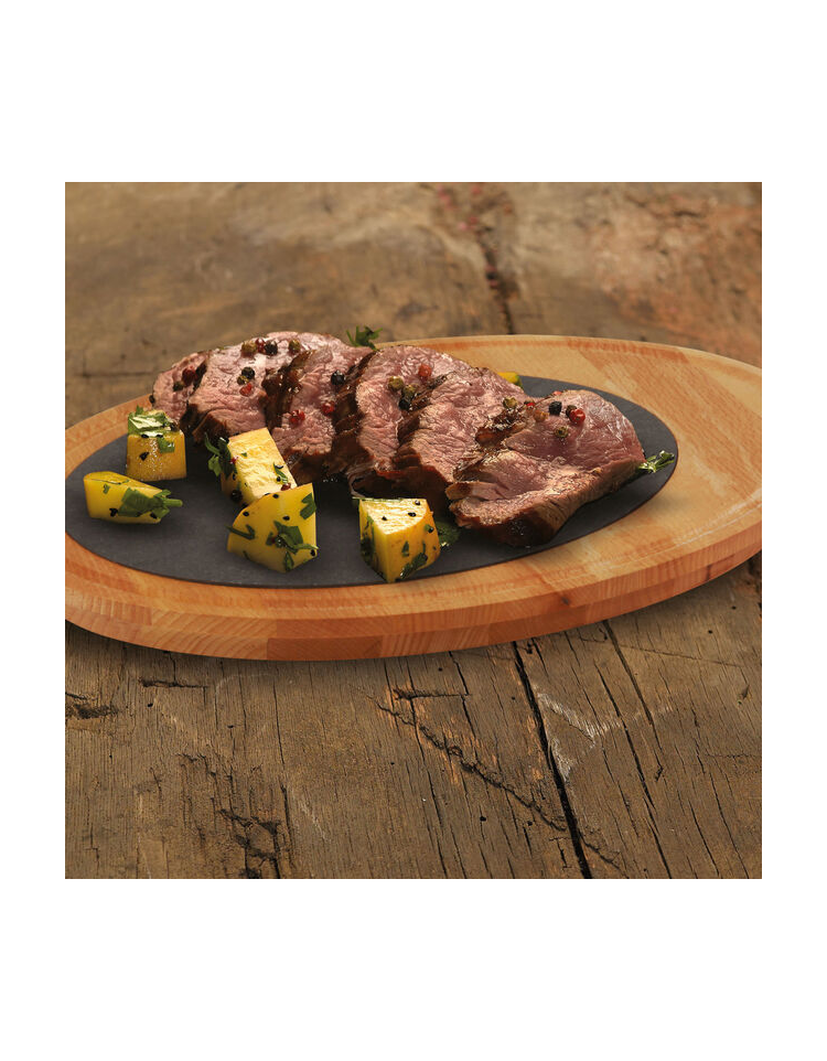 Piatto in ghisa servire con tagliere in legno di iroko - 1-2 pozioni - diametro cm 30