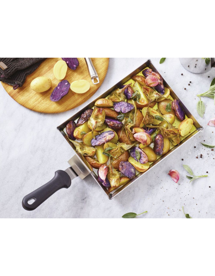 Pinza per teglie permette di introdurre o estrarre in tutta sicurezza teglie - di diverse forme e dimensioni - da forni tradizionali o a microonde.