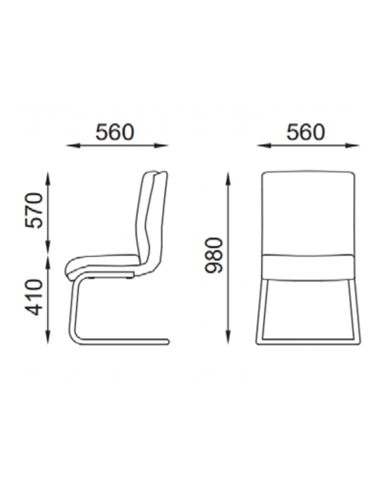 Poltrona con telaio a slitta in acciaio cromato, senza braccioli - rivestimento in Ecopelle o Poliestere ignifugo