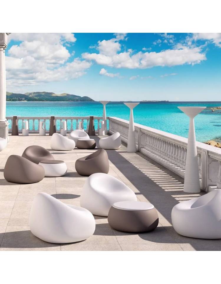 Poltrona dall’estetica morbida ed avvolgente, che bene si integra alla famiglia di complementi d’arredo corredata da sofa, tavolino/contenitore e lettino prendisole. La semplicità minimal delle forme avvolgenti ispirata all’impronta delle dita su superfici morbide, si trasforma in una linea di furniture per arredare e accogliere.Le forme organiche del sofa sono un invito a concedersi un momento di relax. Gli arredi realizzati in polietilene resistente agli agenti atmosferici, sono perfetti per terrazze, giardini e spazi contract, combinando stile contemporaneo e funzionalità.