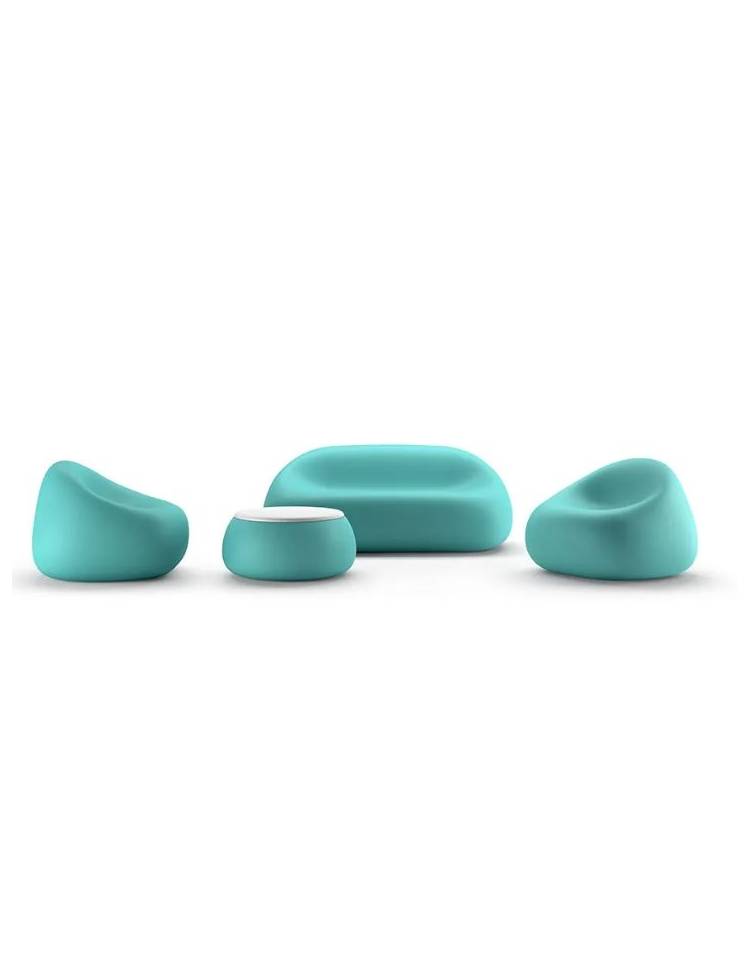 Poltrona dall’estetica morbida ed avvolgente, che bene si integra alla famiglia di complementi d’arredo corredata da sofa, tavolino/contenitore e lettino prendisole. La semplicità minimal delle forme avvolgenti ispirata all’impronta delle dita su superfici morbide, si trasforma in una linea di furniture per arredare e accogliere.Le forme organiche del sofa sono un invito a concedersi un momento di relax. Gli arredi realizzati in polietilene resistente agli agenti atmosferici, sono perfetti per terrazze, giardini e spazi contract, combinando stile contemporaneo e funzionalità.