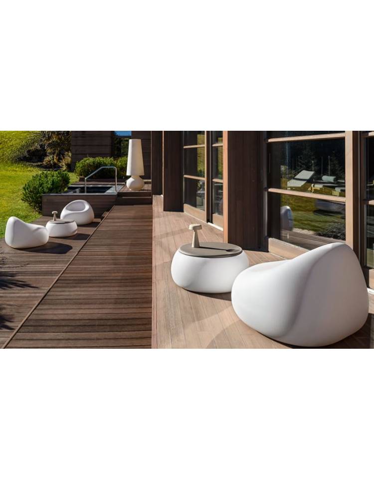 Poltrona dall’estetica morbida ed avvolgente, che bene si integra alla famiglia di complementi d’arredo corredata da sofa, tavolino/contenitore e lettino prendisole. La semplicità minimal delle forme avvolgenti ispirata all’impronta delle dita su superfici morbide, si trasforma in una linea di furniture per arredare e accogliere.Le forme organiche del sofa sono un invito a concedersi un momento di relax. Gli arredi realizzati in polietilene resistente agli agenti atmosferici, sono perfetti per terrazze, giardini e spazi contract, combinando stile contemporaneo e funzionalità.
