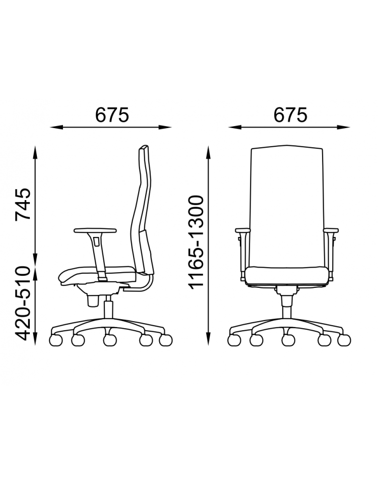 Leva per regolare l’altezza della seduta, leva per regolare l’inclinazione sedile e schienale sincronizzati, bloccabile in 5 posizioni + oscillante libero.