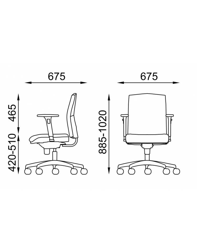 Leva per regolare l’altezza della seduta, leva per regolare l’inclinazione sedile e schienale sincronizzati, bloccabile in 5 posizioni + oscillante libero.