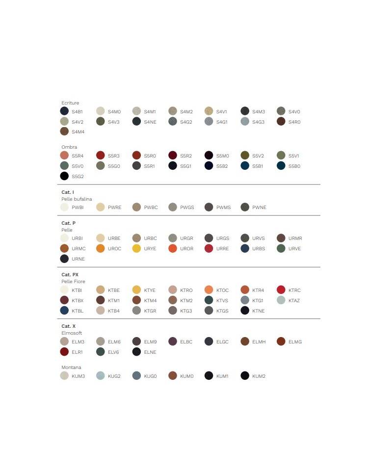 Monoscocca in multistrato di faggio, sagomata, con imbottitura in poliuretano flessibile a densità differenziata.
