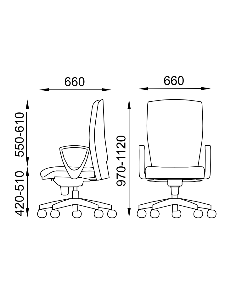 Imbottiture in resine poliuretaniche ricavate da blocchi schiumati, per il sedile densità 40 Kg/mc portante ed elastica extra confort spessore 50mm, per lo schienale e poggiatesta densità 30 elastica spessore 40mm schienale e 30mm poggiatesta.