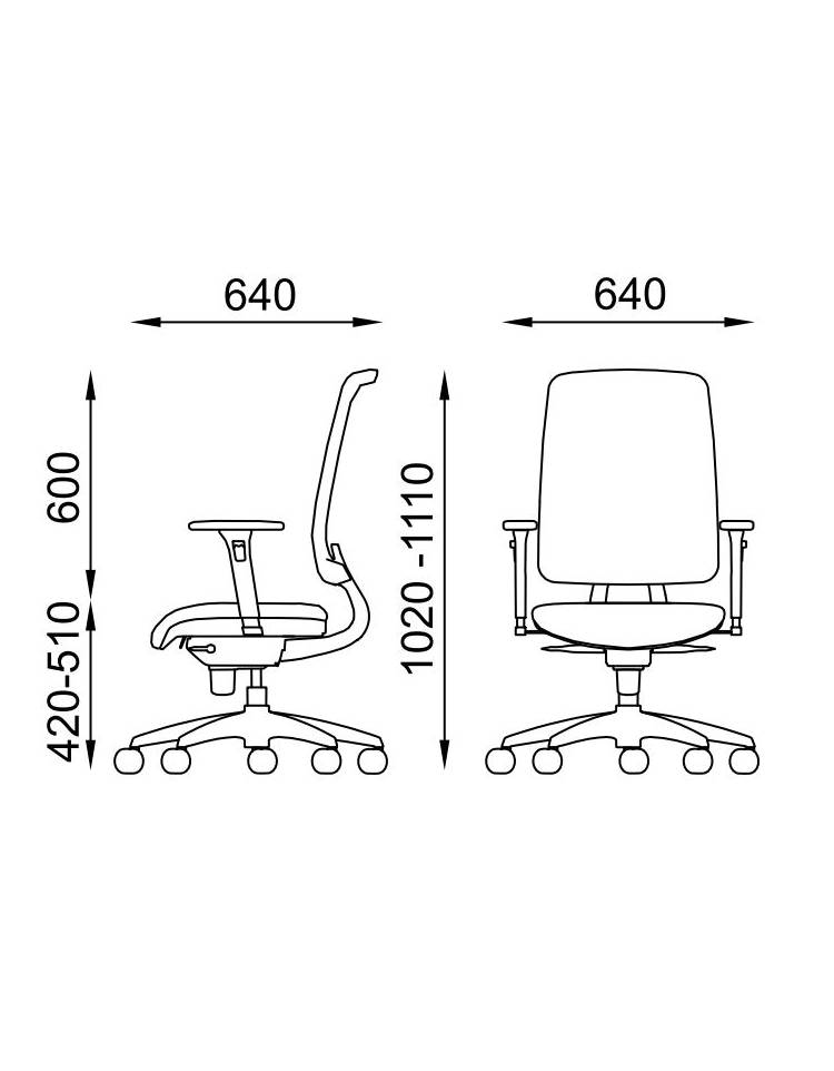 Meccanismo sincronizzato (F) in alluminio verniciato a polveri epossidiche colore nero, dotato di carter in polipropilene nero. Leva per regolare l’altezza della seduta, leva per regolare l’inclinazione sedile e schienale sincronizzati, bloccabile in 5 posizioni + oscillante libero.