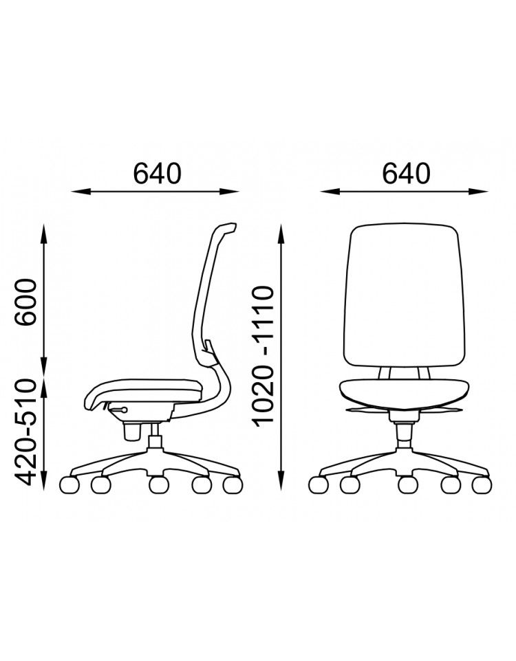 Leva per regolare l’altezza della seduta, leva per regolare l’inclinazione sedile (6°) e schienale (20°) sincronizzati, bloccabile in 5 posizioni + oscillante libero.