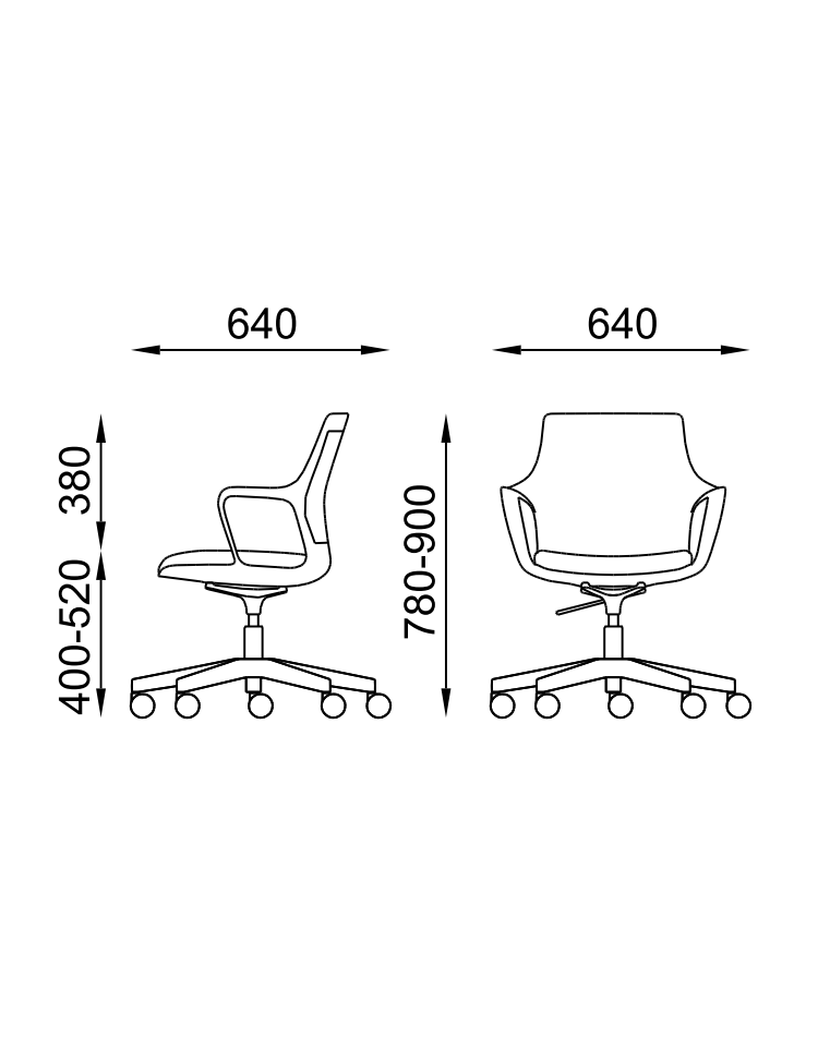 Sedile e schienale monoscocca in nylon bianco anatomicamente curvato con braccioli integrati.