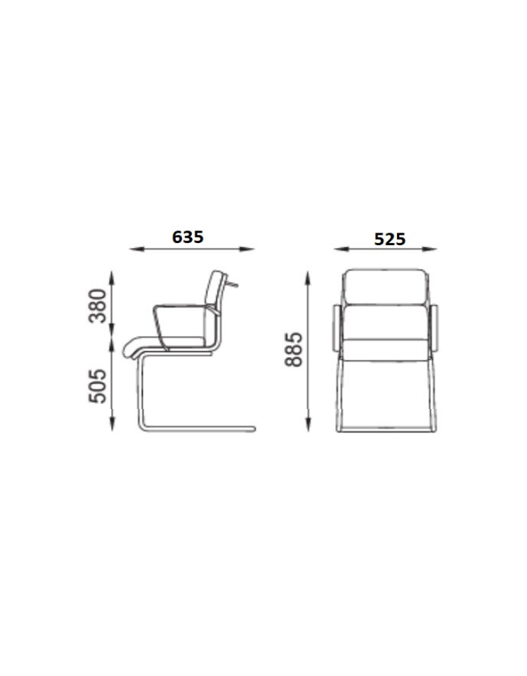 Poltrona visitatore a slitta, struttura in alluminio con braccioli fissi - rivestimento ignifugo - Certificata CAM