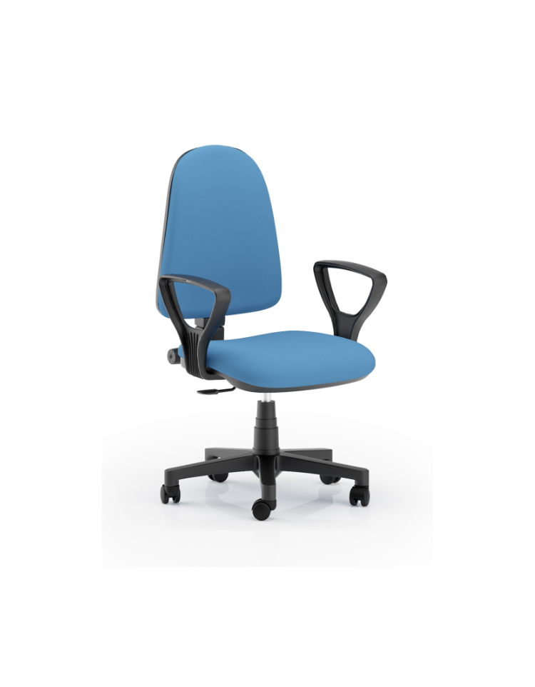 Schienale anatomicamente curvato per supporto lombare, in nylon con barre di rinforzo in acciaio e relativo carter coprischienale in nylon nero, regolabile in altezza tramite pomolo.