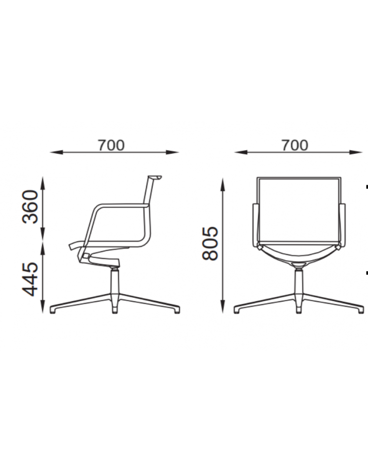 Sedile e schienale monoscocca anatomicamente sagomato a supporto della zona lombare con telaio in alluminio spazzolato e lucidato. Braccioli fissi in alluminio spazzolato e lucidato.