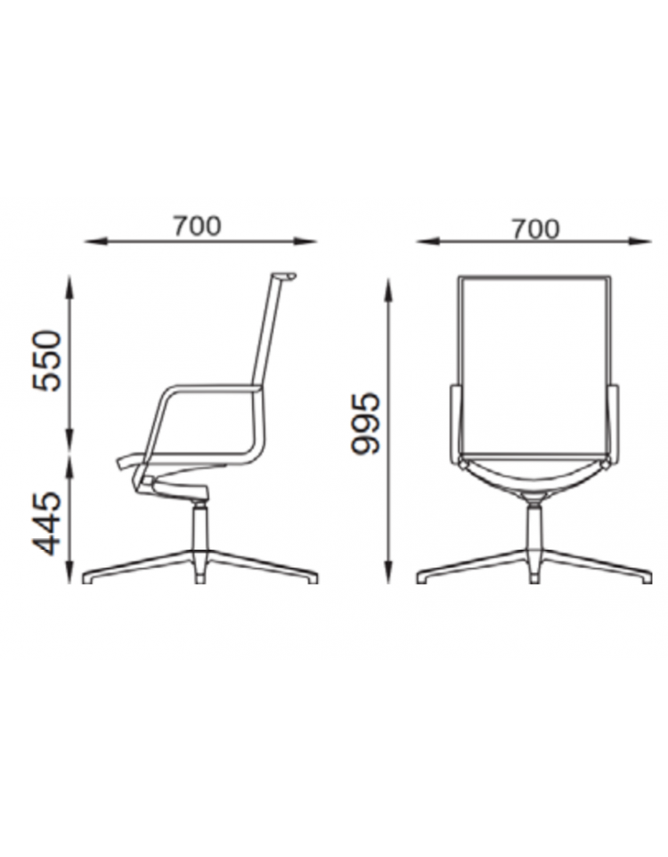 Poltrona visitatori con schienale medio imbottito - Rivestimento in Ecopelle ignifuga - Meccanismo piastra a gas